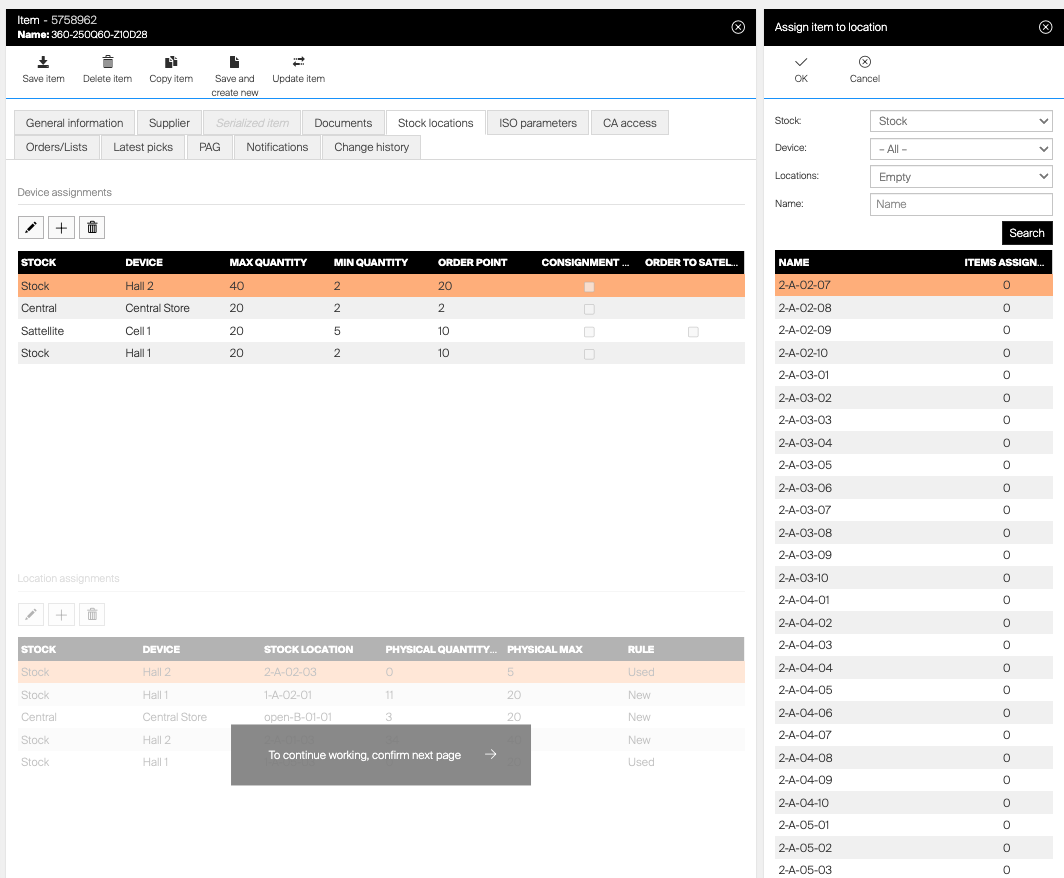 We think it would be useful to be able to see empty locations when you create a new item. That way you don't have to physically check which location is empty in the device.