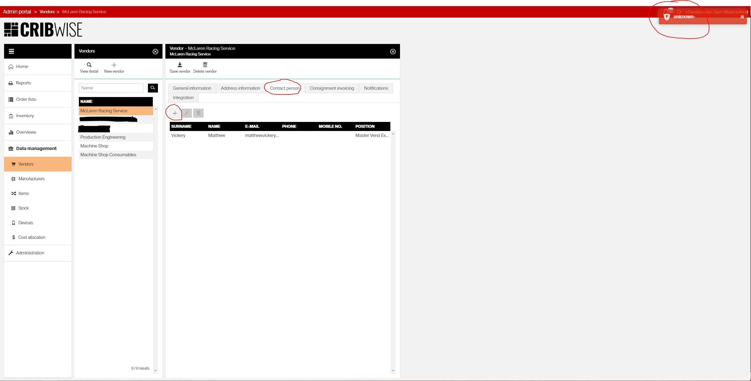 An "unknown" error message appears when any AP user tries to add a new contact person to any vendor (see attached).